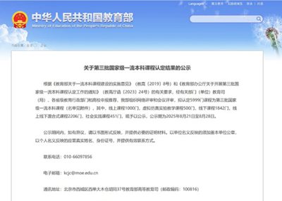 近日,教育部公布第三批国家级一流本科课程认定结果,我们两门本科课程成功入选。此次入选充分体现了我们在课程建设与教...
